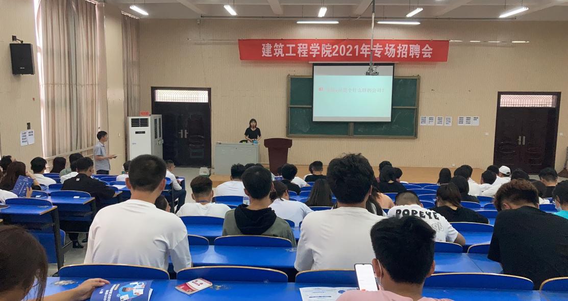 6月10日至6月11日,针对当前毕业就业形势,由建筑工程系主办"2021年企业招聘专场宣讲会",本次宣讲会为期两天,共召开三场,在五区二楼多媒体阶梯教室举行。本次活动共邀请了中铁十七局集团建筑工程有限公司、中汽智达(洛阳)建设监理有限公司、湖北利达建设工程集团有限公司、河南合一装饰股份有限公司等18家建筑行业内的优质企业参加了招聘宣讲。本次宣讲会约有三百余名员工参加了此次宣讲会。