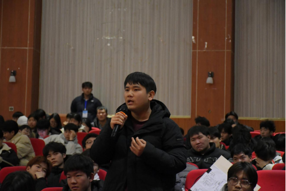 杜广贤董事长以周口航运的实践与探索为主题展开分享。首先,深情回顾了周口航运的悠久历史和辉煌历程,详细介绍了周口航运的发展现状,以及在通江达海、内连外通,推动地方经济发展中的重要作用。其次,着重强调了随着国家发展战略和省市布局规划的持续推进,周口航运必将迎来前所未有的发展机遇。最后,还分享了自己在航运领域的经验和心得,鼓励在场的师生们要勇于逐梦,敢于创新,为航运事业的发展贡献自己的力量。